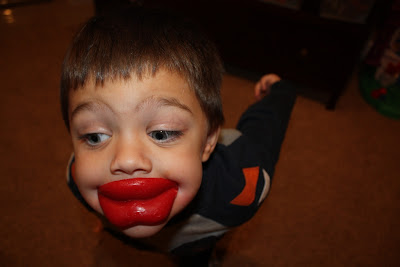 And getting ready to see Santa. The visit went better than we expected. Cal was beyond excited to see Mr. C. Bennett made it through one pic with Santa and decided he didn't want anymore to do with him, but we had no tears. Cal told Santa the only thing he wanted was a cotton picker (Santa's response, "ah what?") and being the good brother that he is, he spoke on behalf of his little bro and told Santa Bennett really wants a 'choo choo' & a tractor.If only I could upload some of my other pics, but blogger is deciding they should all show up sideways. Only seems to happen with pics taken on my SLR. Anyone else have this problem?