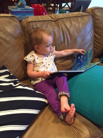 | Emmie's obsessed with the boys' toy snakes. She immediately puts them around her neck when she finds them. |